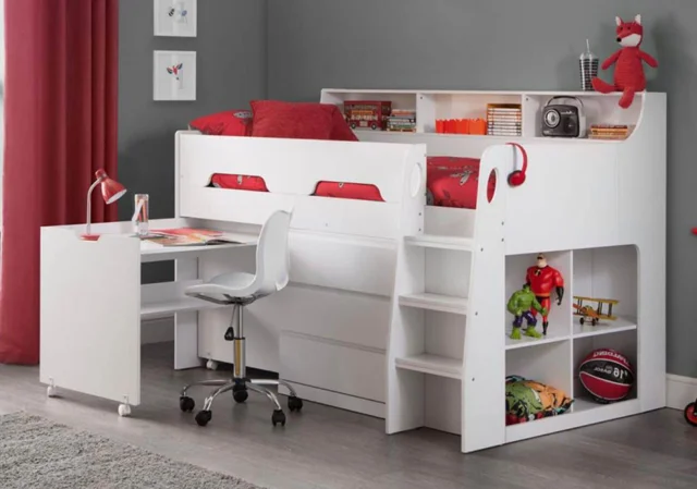 طراحی هوشمندانه کاملا کاربردی دارای میز تحریر متحرک و کشو کتابخانه با پله ی نردبانی .جنس ملامین دارای رنگ بندی و سفارشی سازی